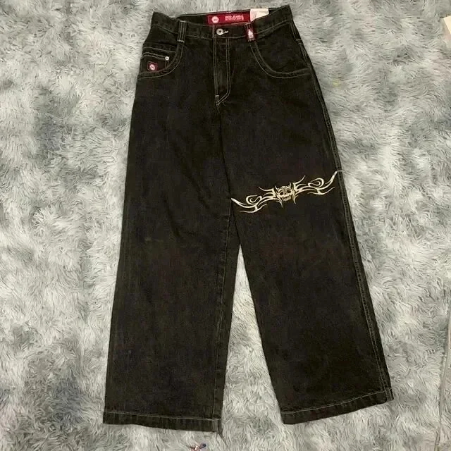 Big boy fashion hip-hop cartoon embroidery retro multiple loose jeans-2478