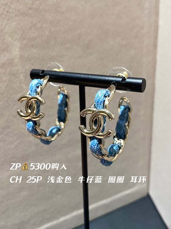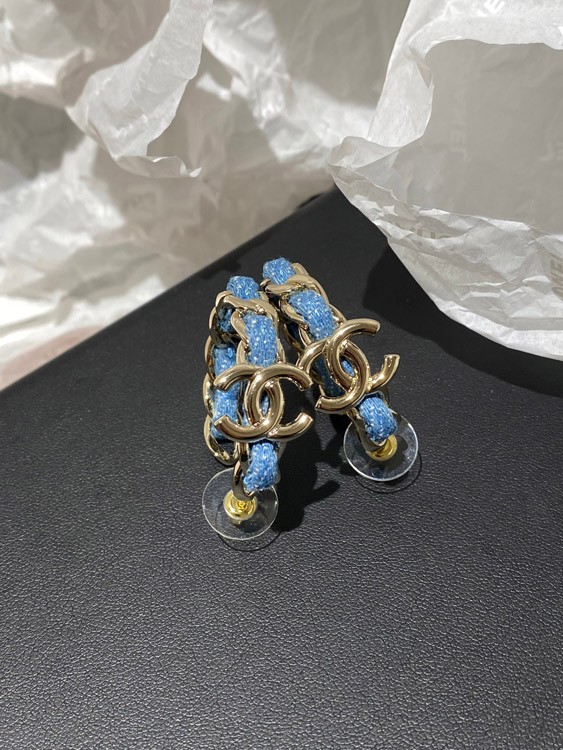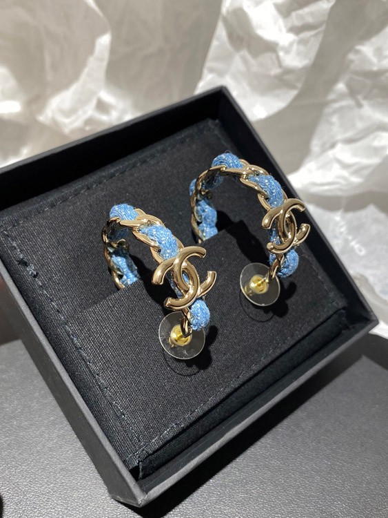 Home > Chanel Light Gold Denim Blue Hoop Earrings-3595