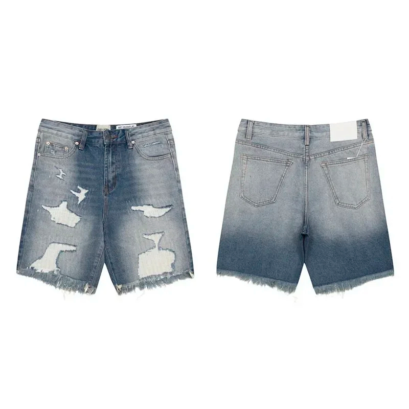 Gallery Dept embroidered letters washed jeans for women in high waist loose shorts with tassels worn out (7 styles)-2437