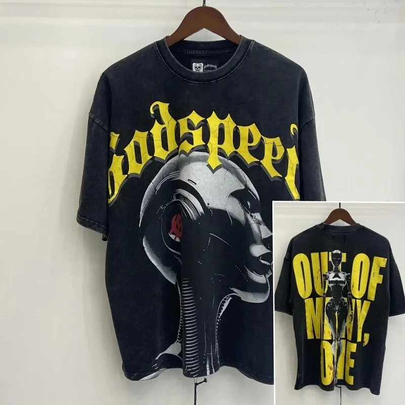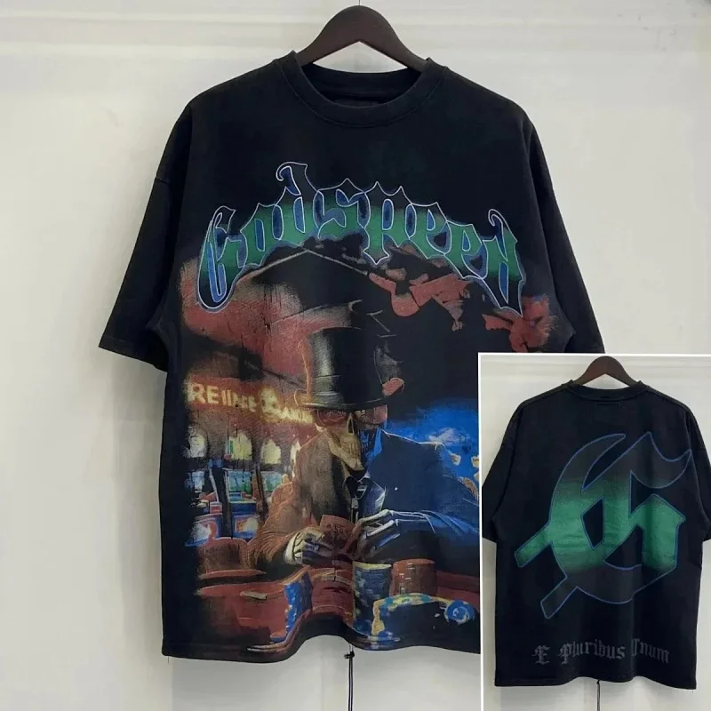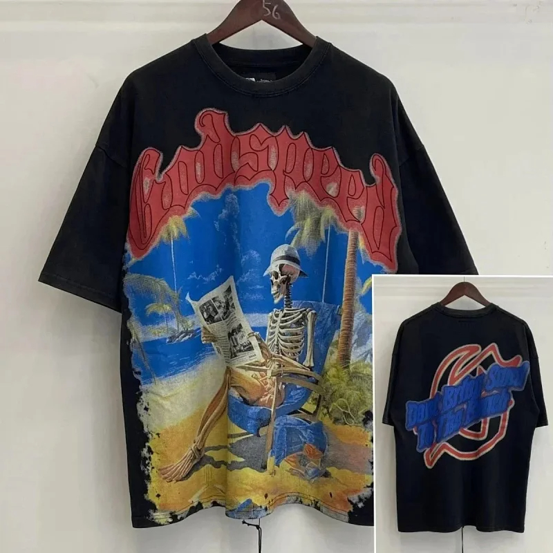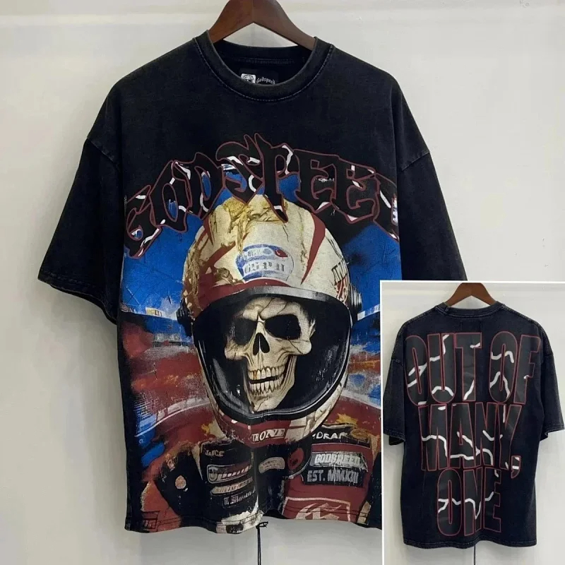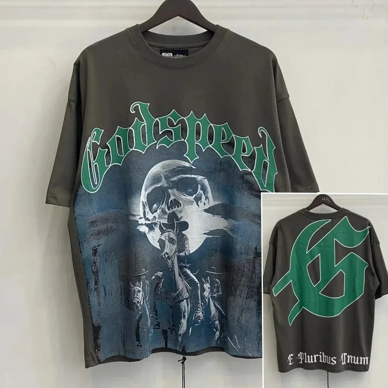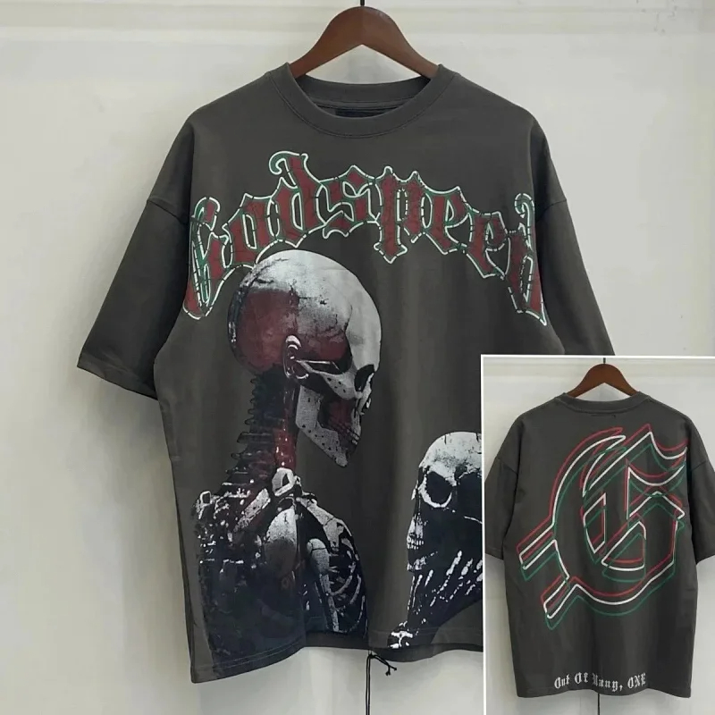 Godspeed Skull Rock Band Washed Casual Loose Short Sleeve T-shirt-2758