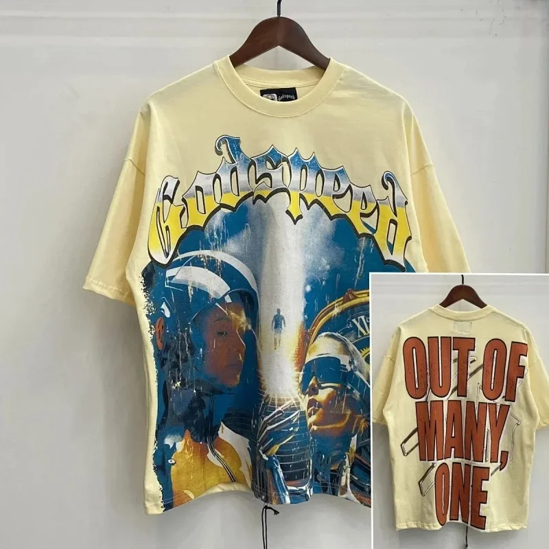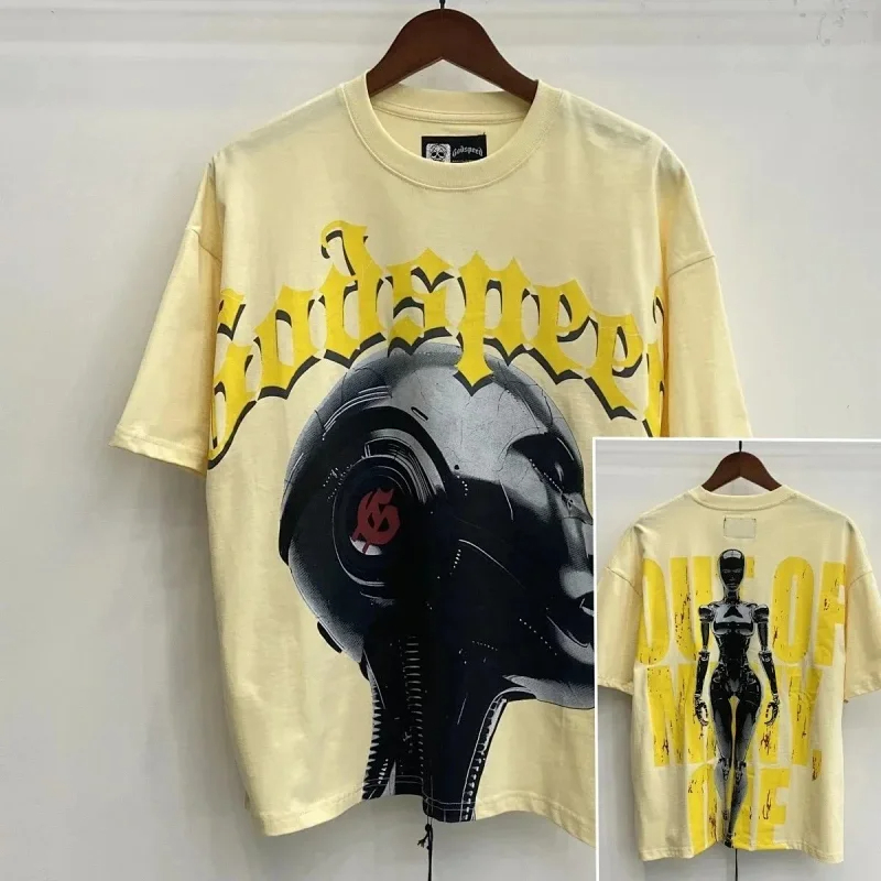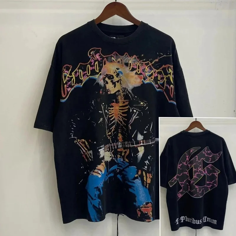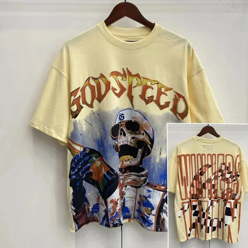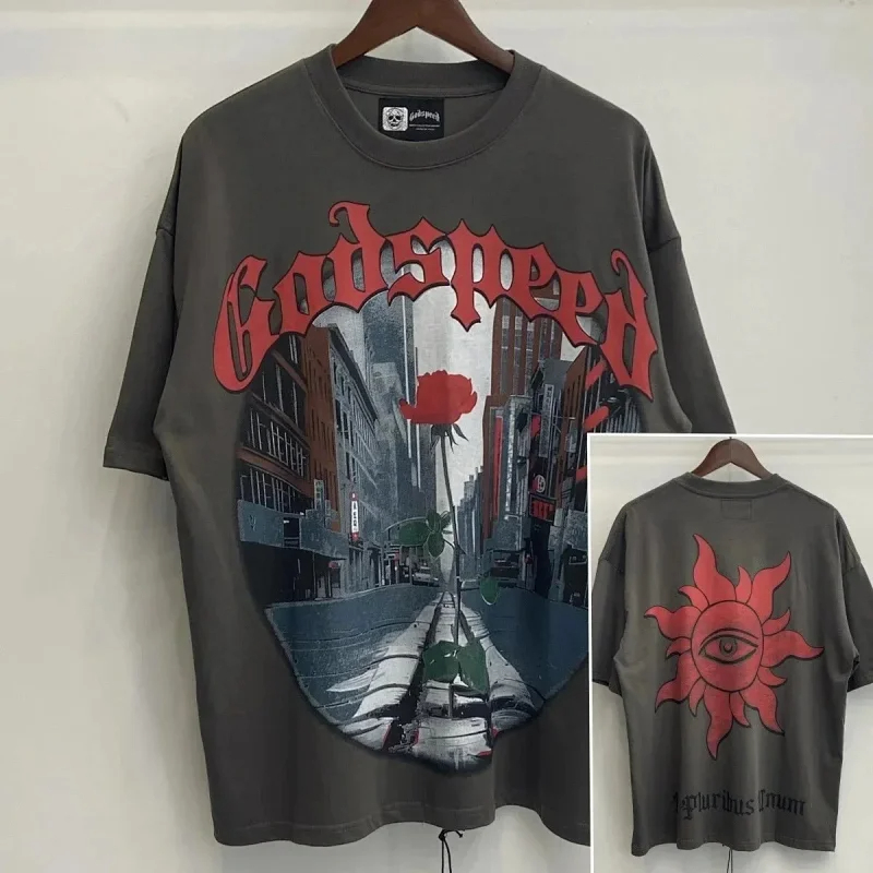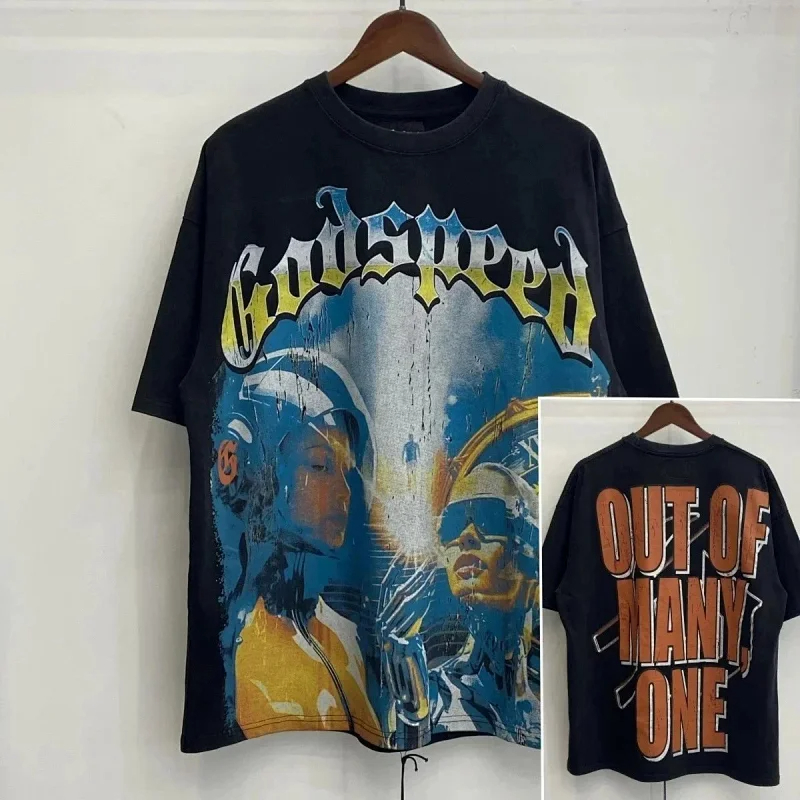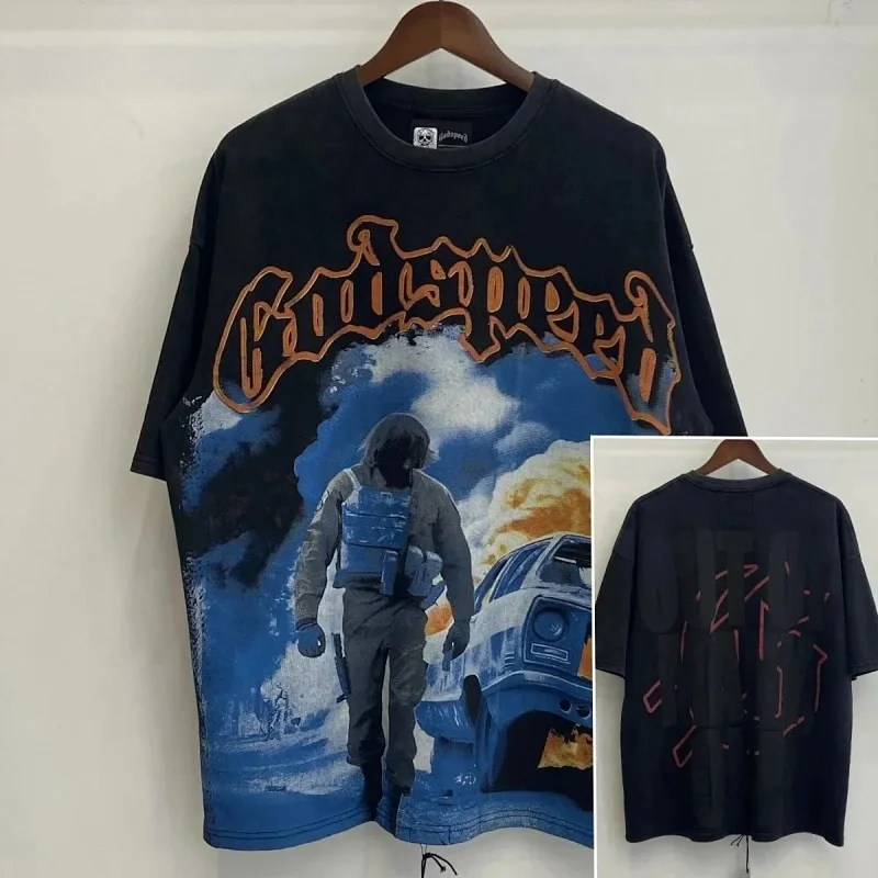 Godspeed Skull Rock Band Washed Casual Loose Short Sleeve T-shirt-2758