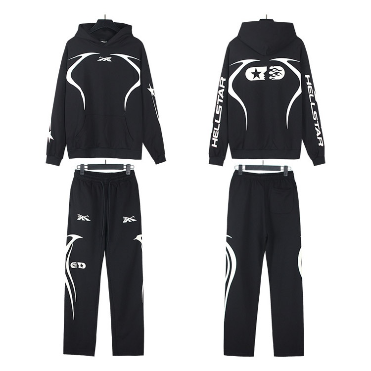 Hellstar Hooded Long-Sleeve Pullover Sweatshirt and Sweatpants Set-4551