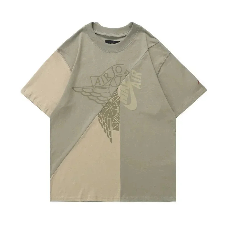 Jordan Travis Scott joint series Air 6 patchwork print sports short-sleeved T-shirt-2781