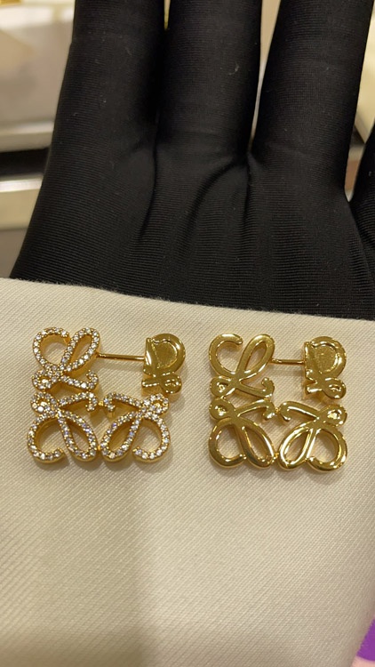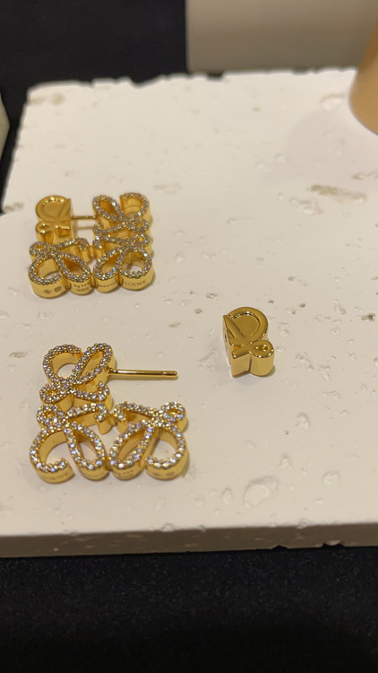Loewe gold diamond cube earrings-3718