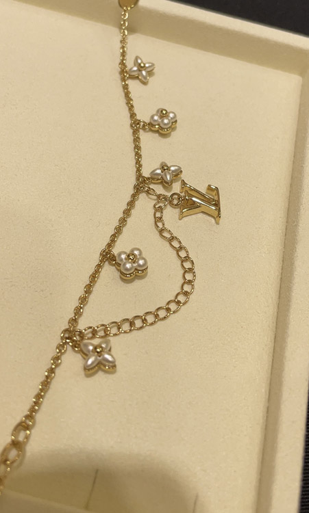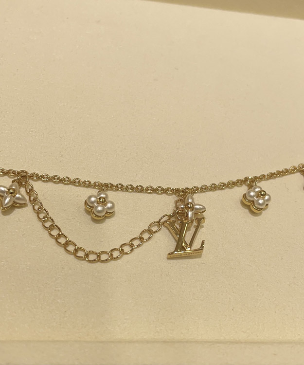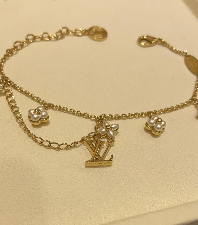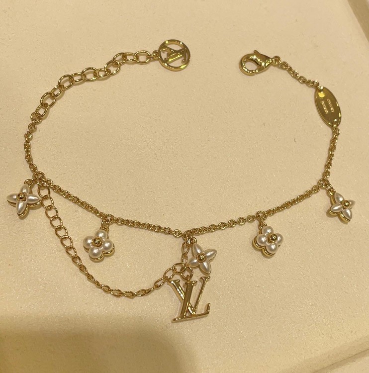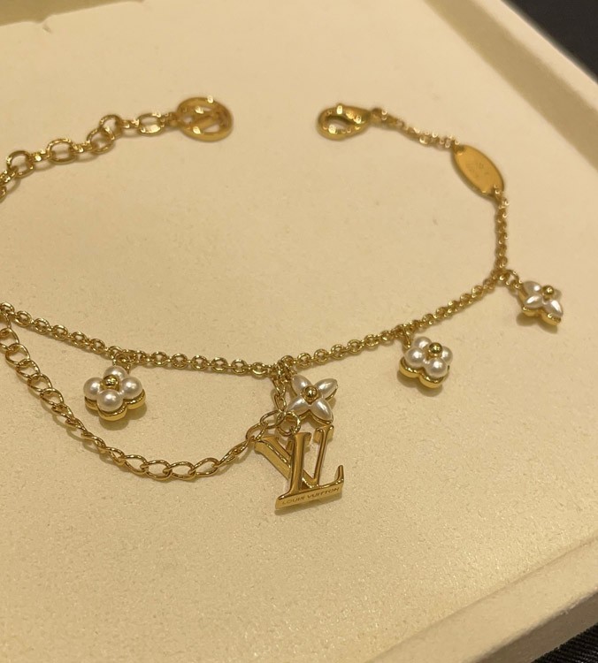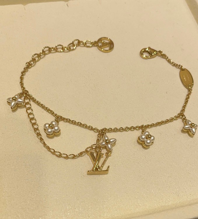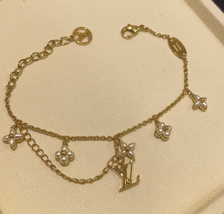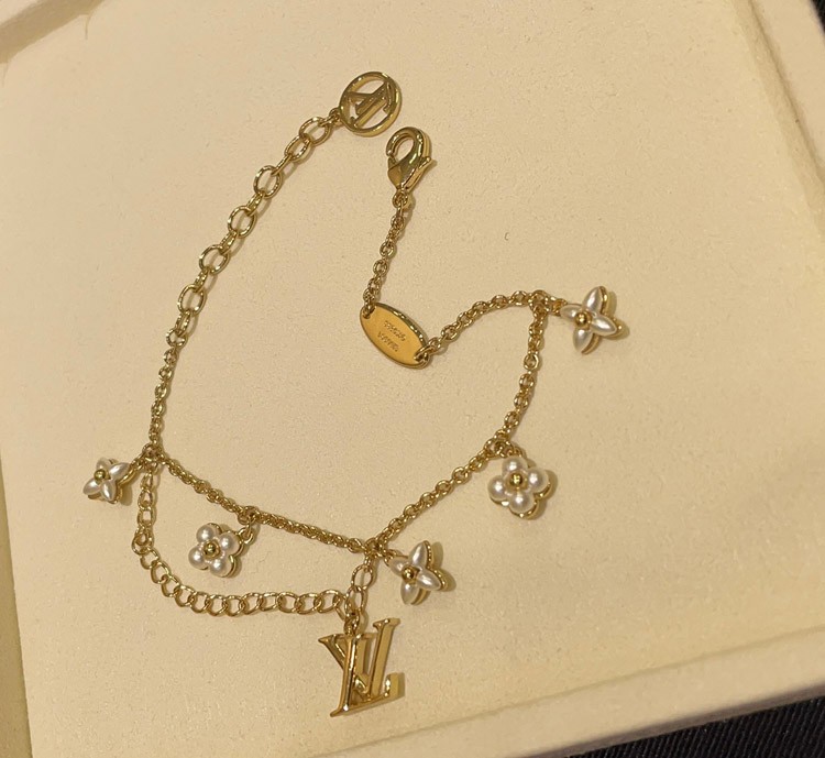 Louis Vuitton LV Letter Floral Pattern Pearl Gold Bracelet-3724