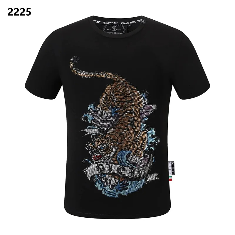 PLEIN Medusa Tiger Head Printed Diamond Short Sleeve T-Shirt-1982