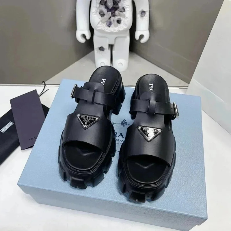 Prada's new thick-soled Roman woven European and American style height-enhancing sandals and slippers(40 styles)-2339