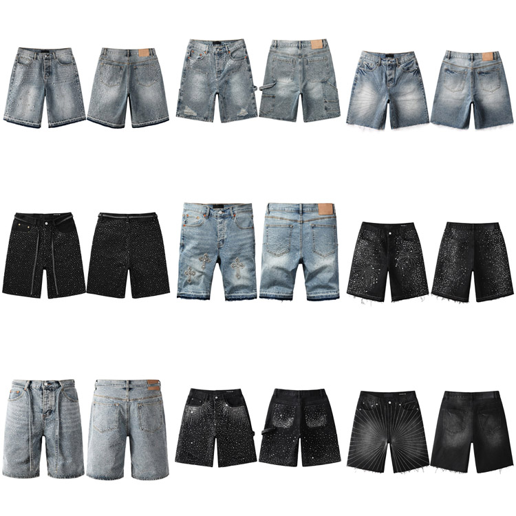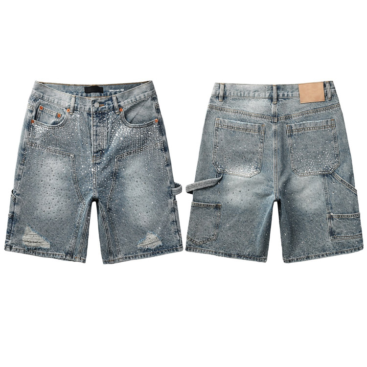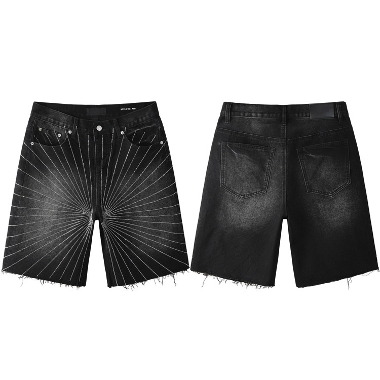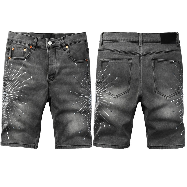 Purple Brand new hot diamond denim retro shorts washed shorts straight-4254