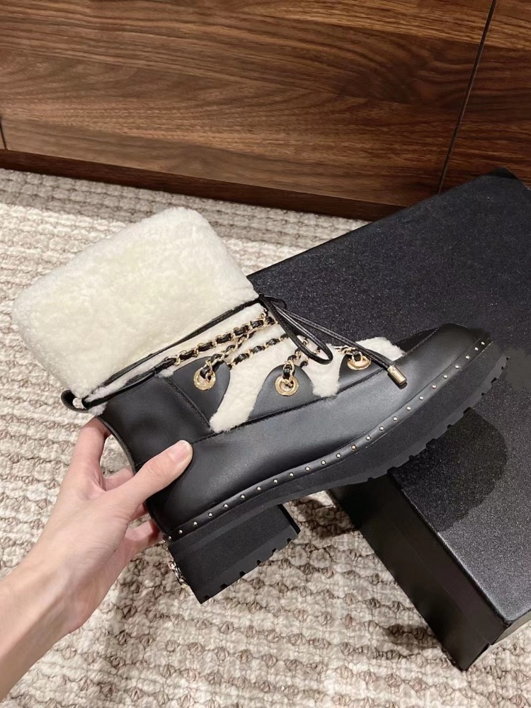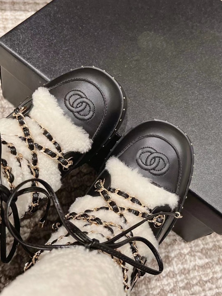 Chanel shearling-lined mid-calf snow boots with laces-5773