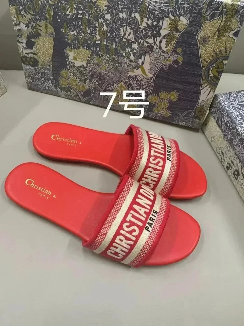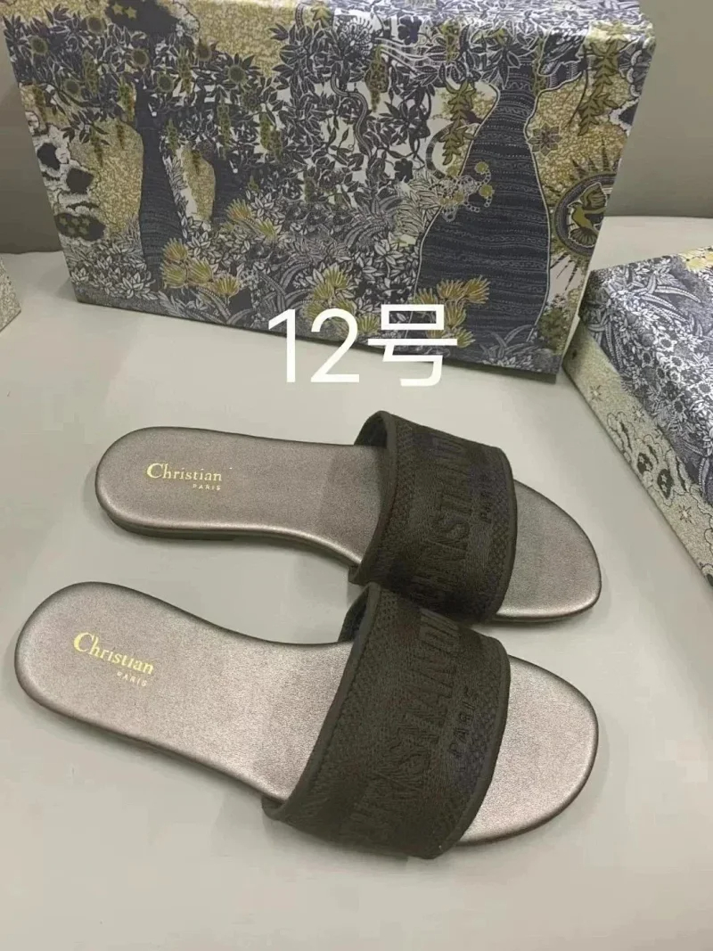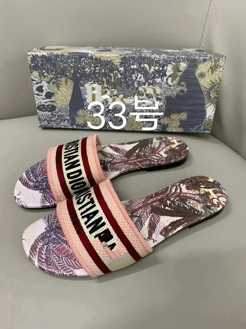 Dior 2025 new summer genuine leather letter embroidered outerwear women's slippers-2336