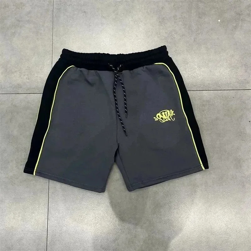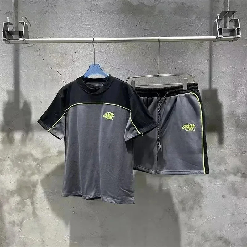 SynaWorld embroidered letter patchwork short-sleeved T-shirt shorts set-2789