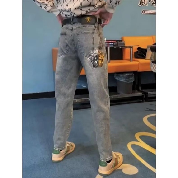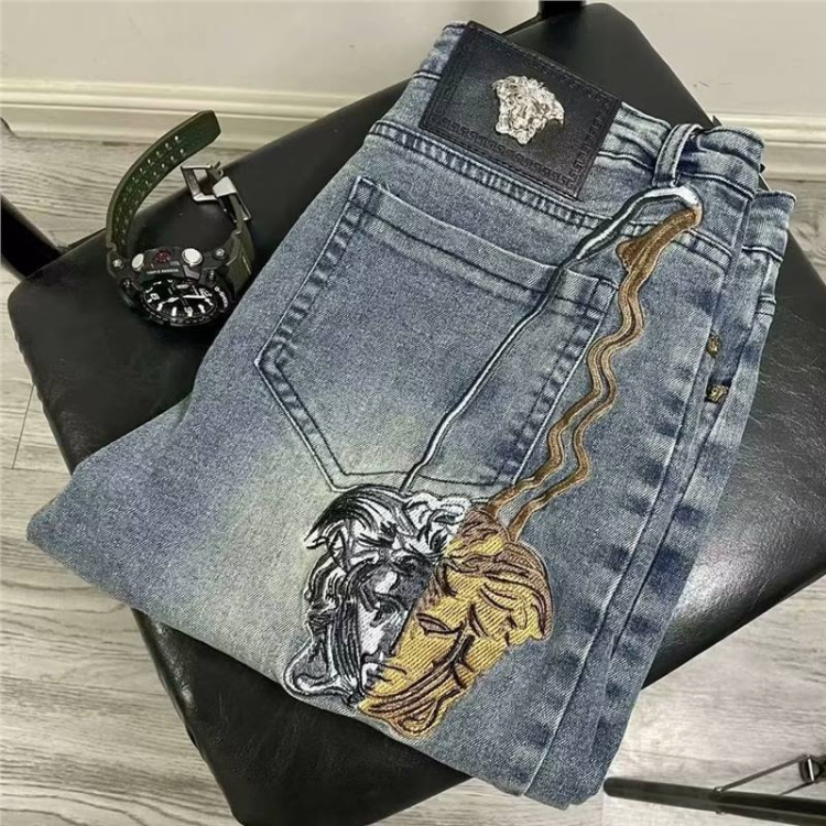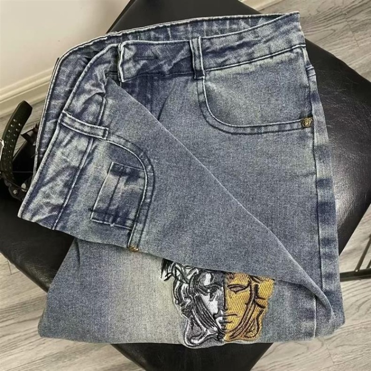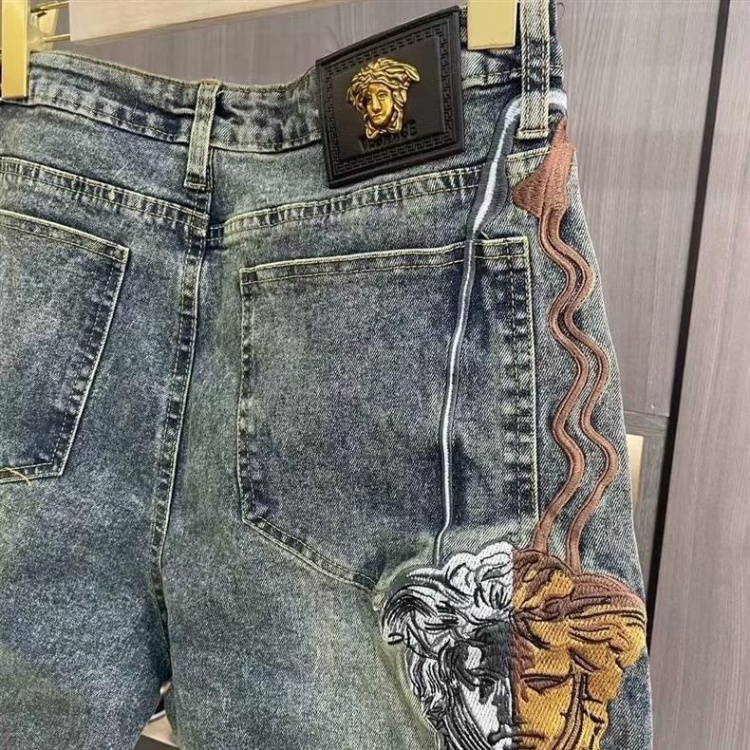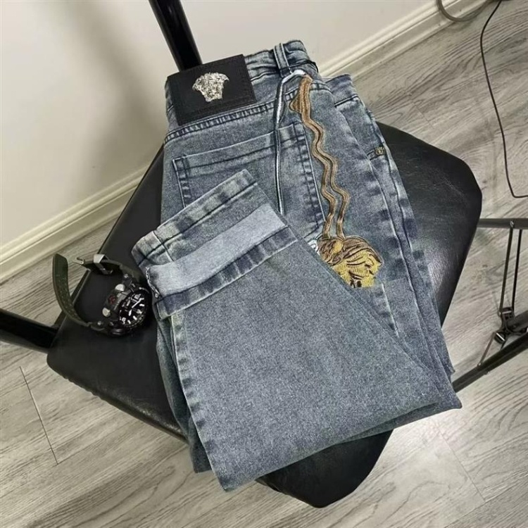 Home > Versace new embroidered casual straight-leg versatile denim trousers-5868